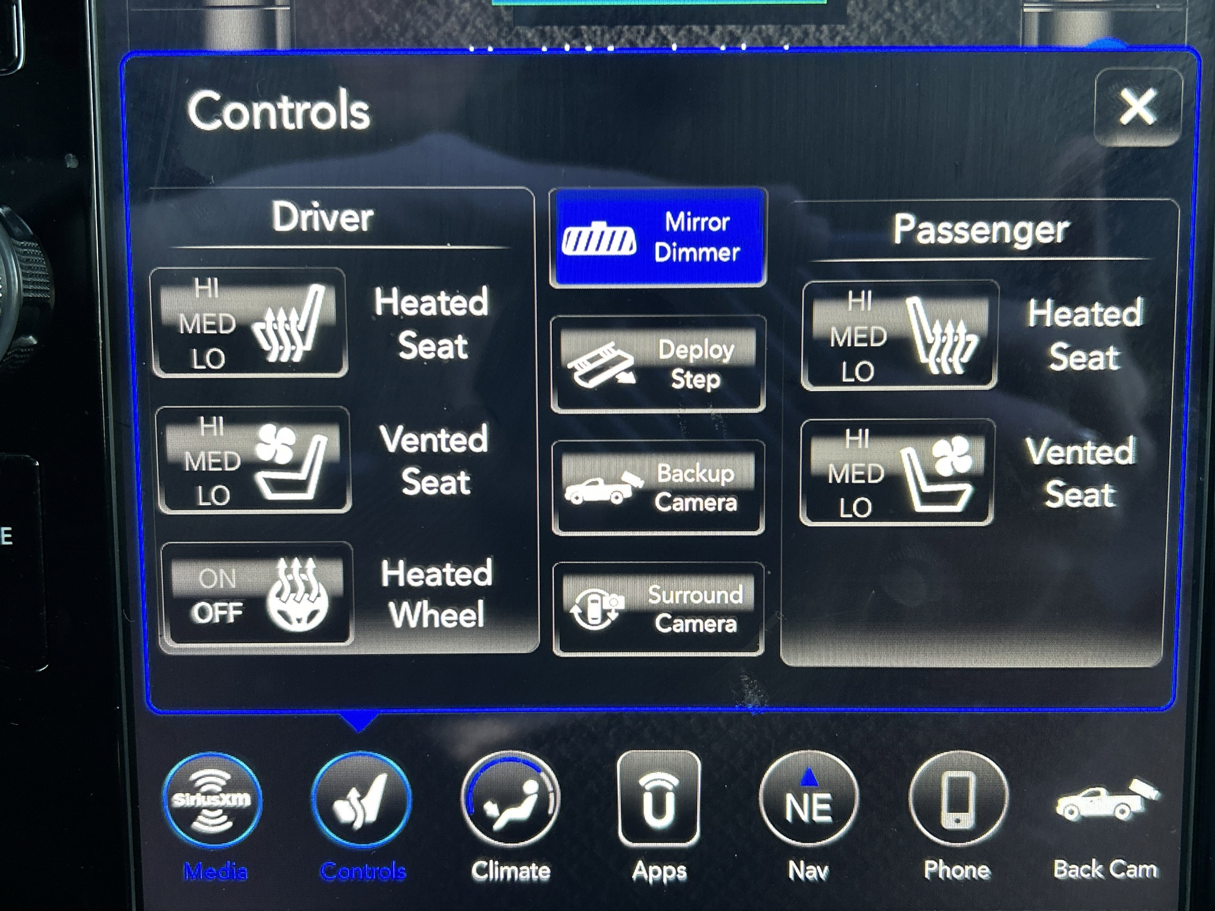 - Chrome Power w/Tilt Down Heated Auto Dimming Side Mirrors w/Power Folding and Turn Signal Indicator