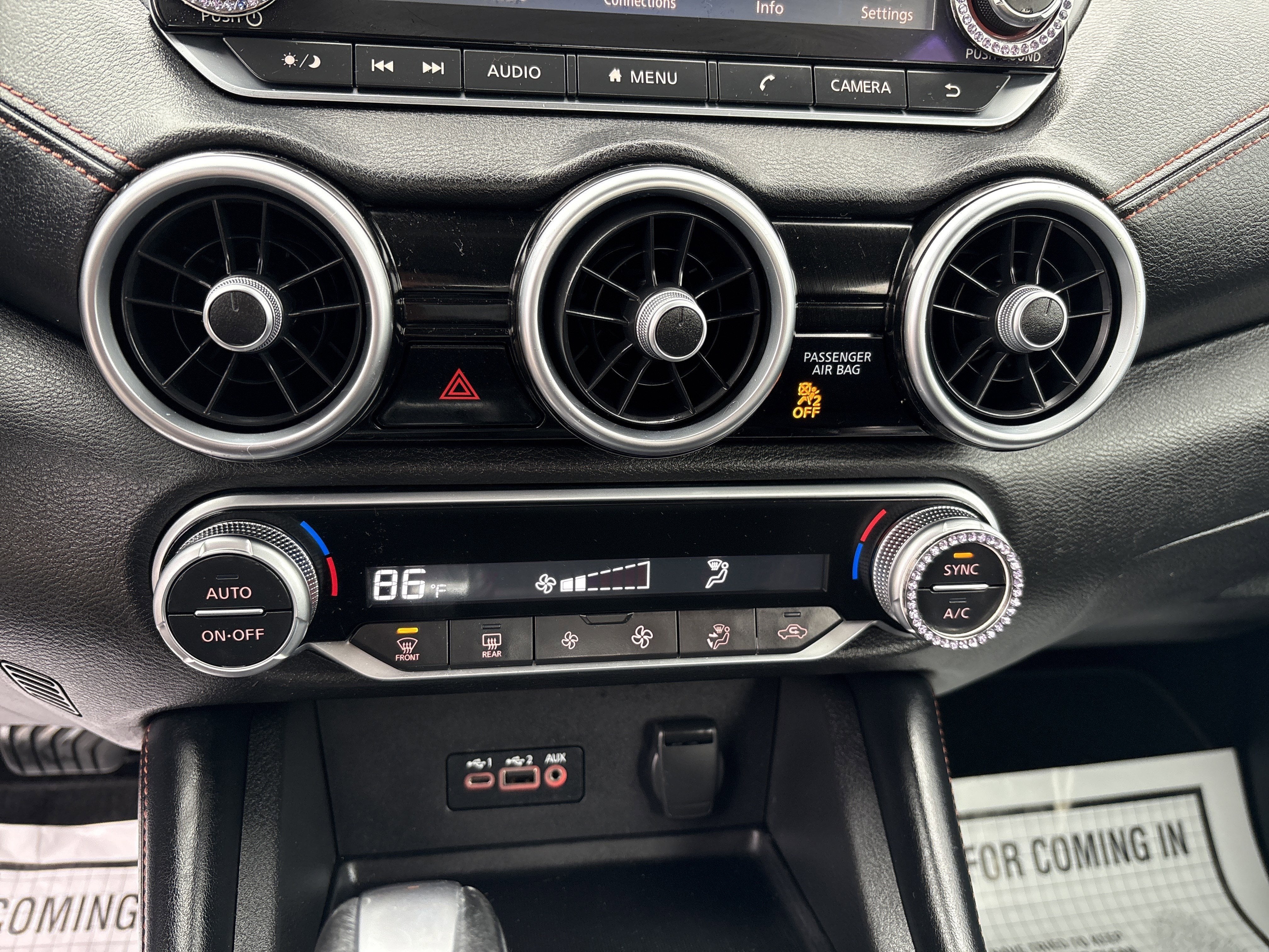- Radio: AM/FM w/RDS/MP3/Aux-In -inc: 8" color display w/multi-touch control, streaming audio via Bluetooth®, Bluetooth® hands-free phone system, hands-free text messaging assistant, Siri eyes-free, Google Assistant voice recognition, NissanConnect featuring Apple CarPlay and Android Auto, 1 additional front USB (type C) and 1 charge-only USB (type A) center console and SiriusXM radio w/advanced audio features