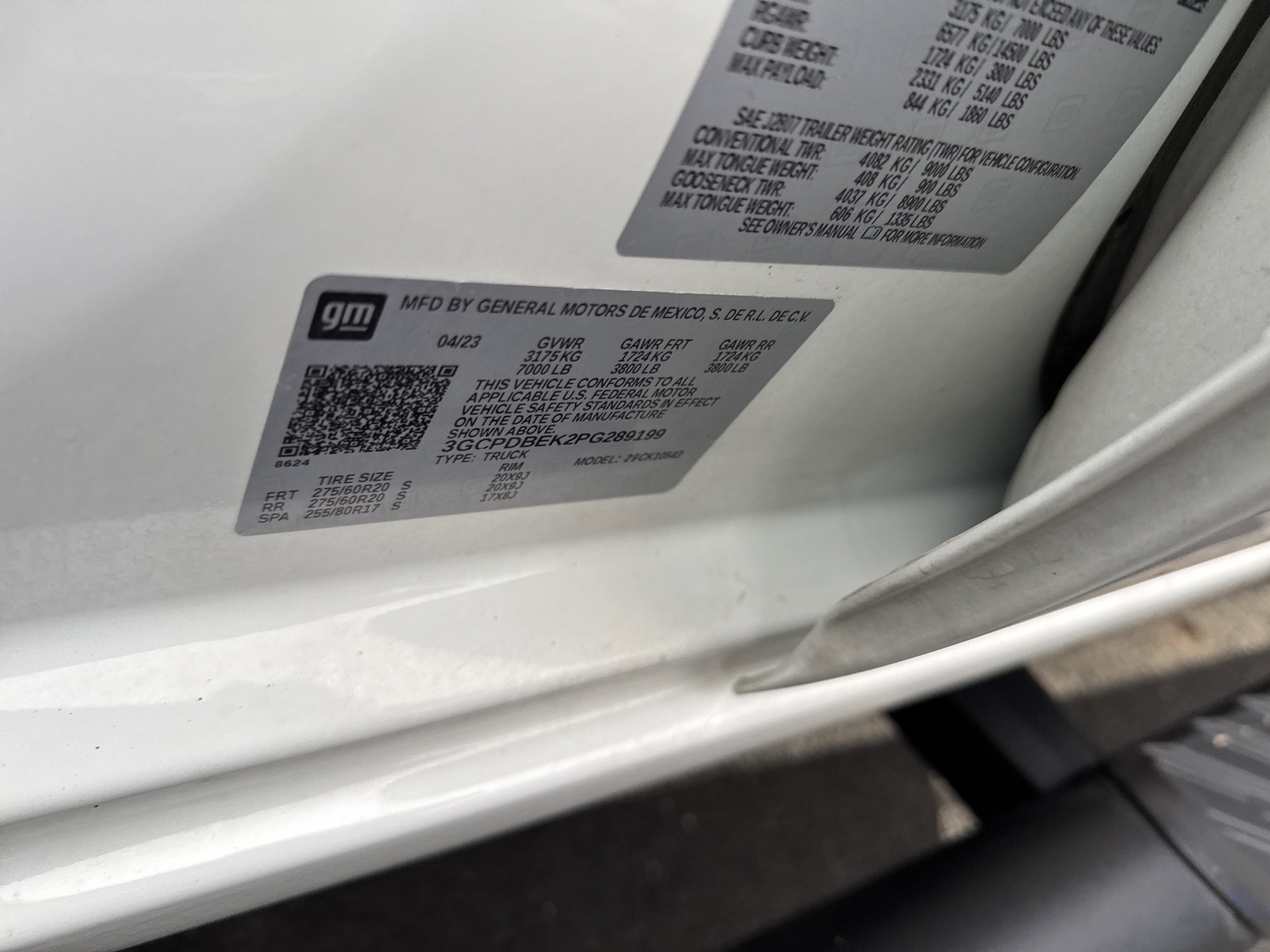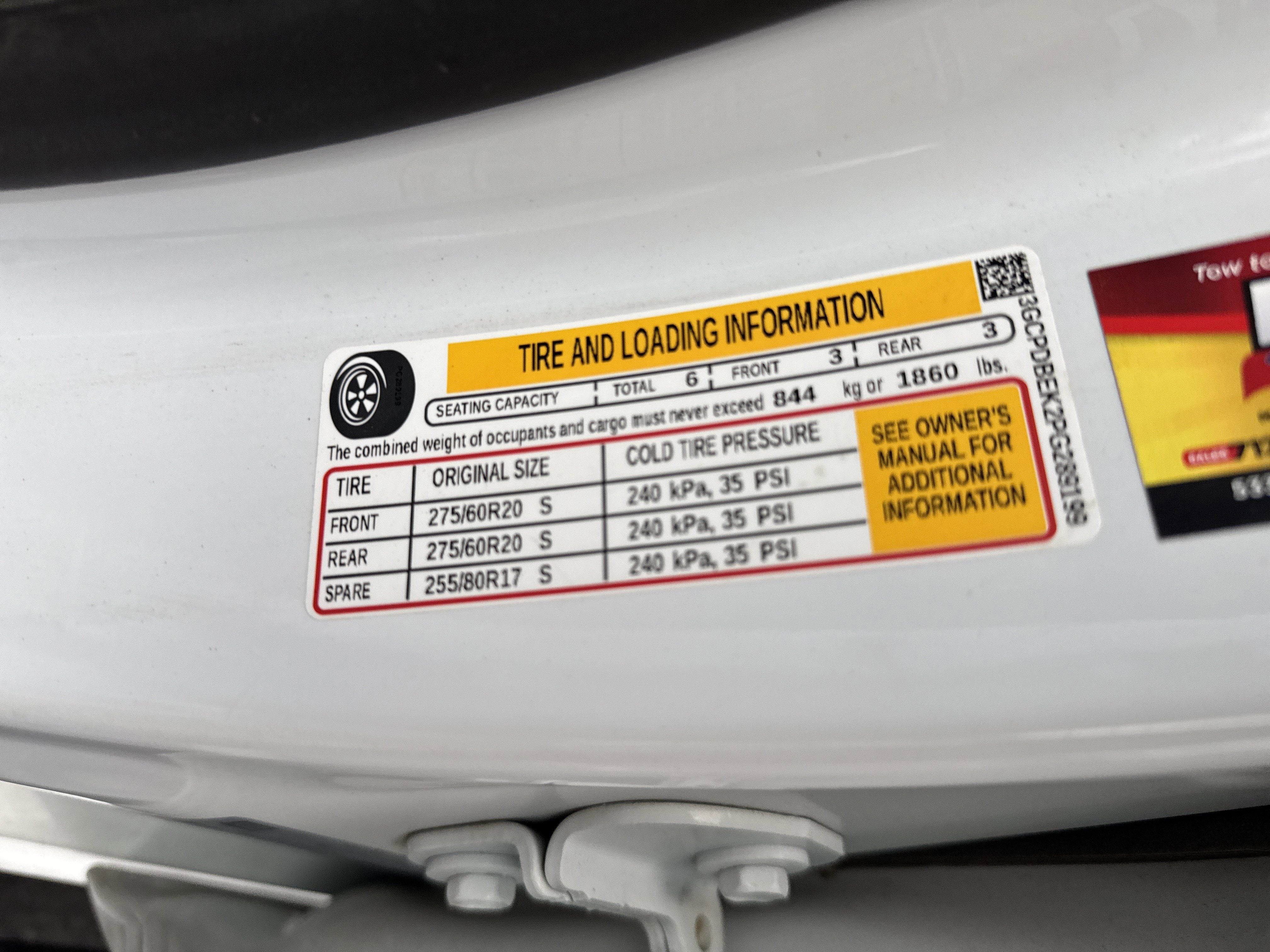 - Tires, 275/60R20 all-season, blackwall