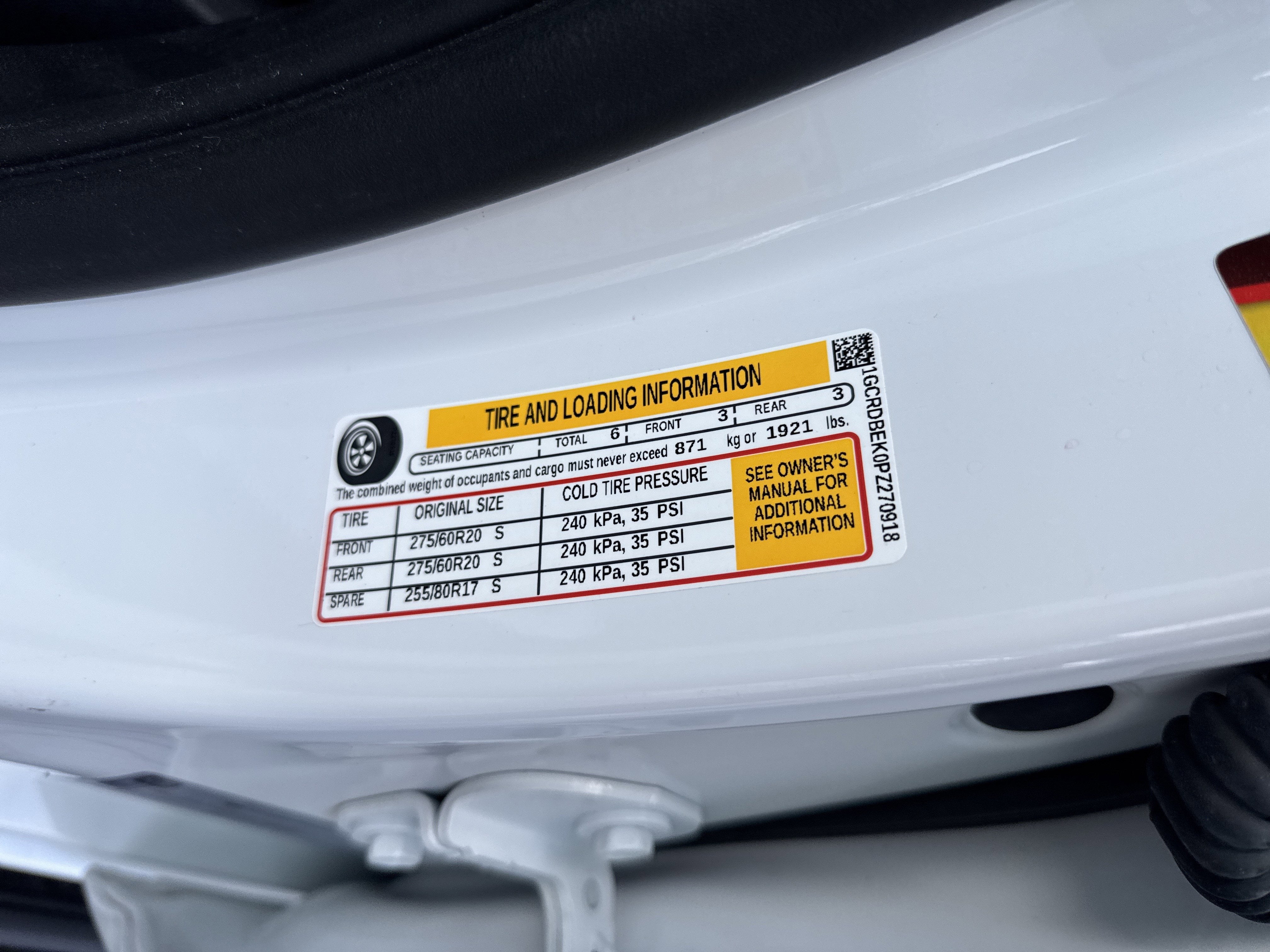 - Tires, 275/60R20 all-season, blackwall