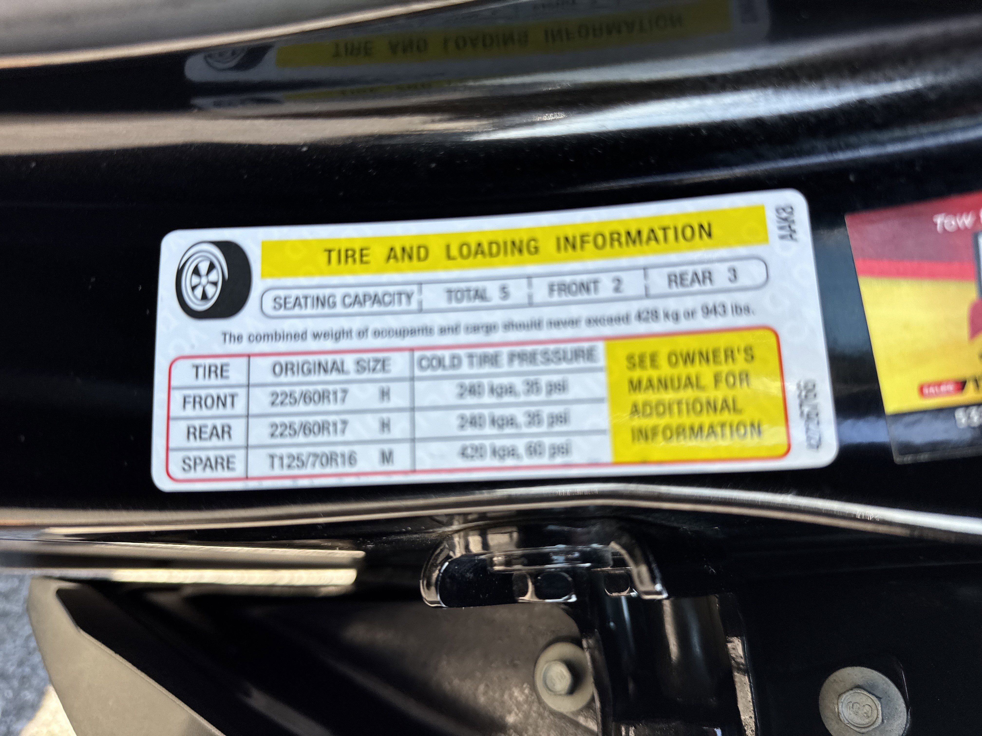- Tires, 225/60R17 all-season, blackwall